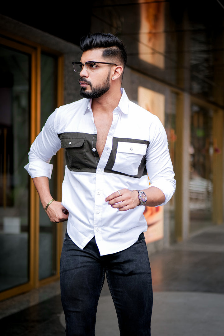 About The Product- White-Dark Brown Pocket Designer Shirt. A Shirt That Is Stitched With Detailed Precision